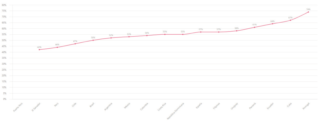 The User Diversity Index shows notable differences in predominant user profiles at each institution. In Argentina, researchers account for 75% of consultations, whereas in the Dominican Republic, they represent only 6%, with the general public being the largest group (93%). In Portugal, students make up 30% of users, while in the Philippines, Spain, and Colombia, consultations from government agencies are more prominent (20%).